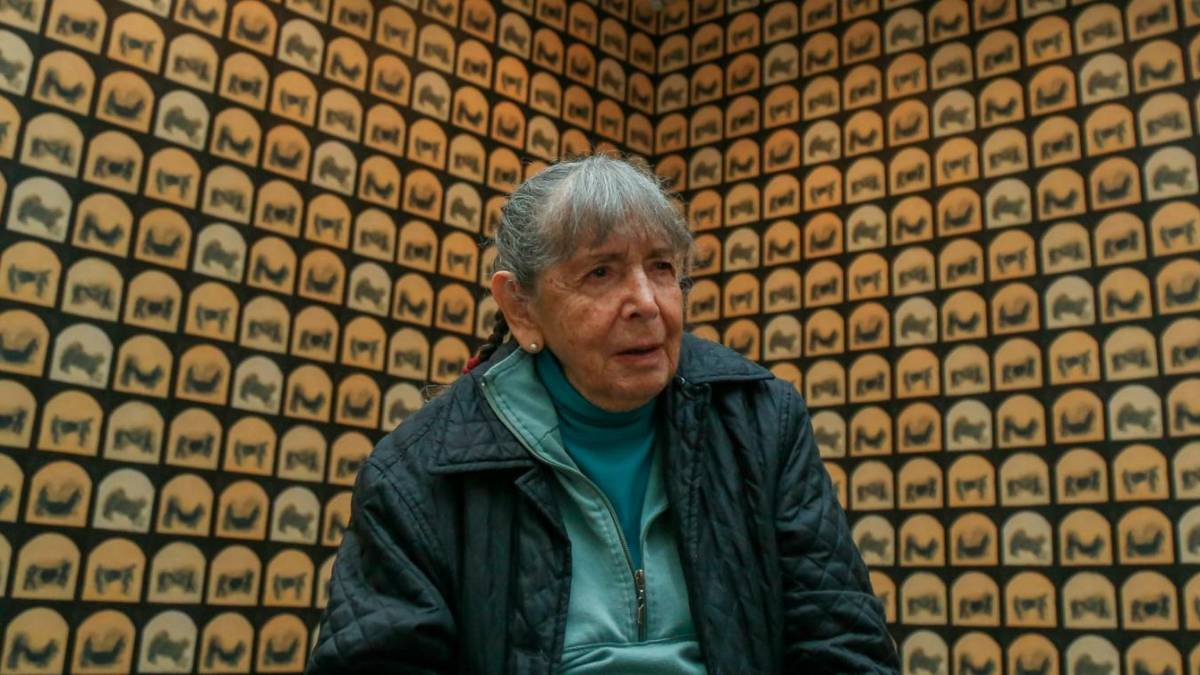 • La maestra Beatriz delante de su obra A Posteriori. Foto: Colprensa