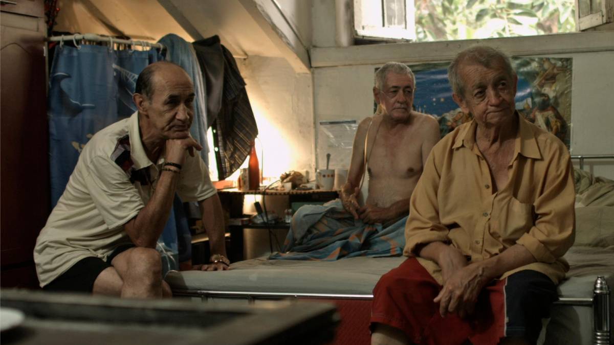 El documental registra su transcurrir, los escucha, ve su teatro de gestos histriónicos, pero también compone una sinfonía visual del espacio. Espera y contempla. Esa mirada detenida y atenta contrasta con la borrasca interior de los personajes, todos adultos “mayores”, entre ellos una “pareja” de tres hombres gay. Fue filmada, como La piel en primavera, durante la pandemia. Igual que en la película de Yennifer, en Estancia hay una sensación de tiempo suspendido donde cualquier cosa (el milagro o el desastre) podría suceder.