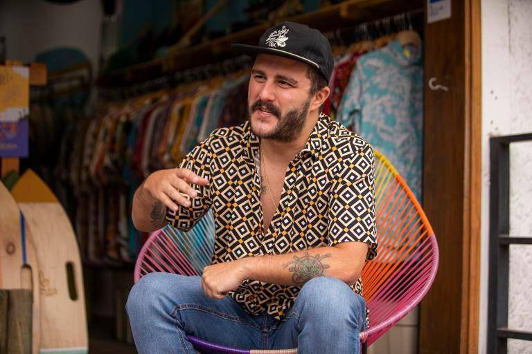 Pero allí se encontró con una situación que hasta el día de hoy le causa gracia: Daniel empacó algunas camisas de colores intensos, un toque caribeño y vallenatero, pensadas inicialmente como vestuario para la banda, para los conciertos. En suelo cubano ocurrió algo que no estaba en los planes: las personas se le acercaban más a preguntar por las camisas que por la música. “Oiga, ¿esa camisa dónde la consiguió?”, le repetían. Ahí entendió que había algo potente en lo que vestían. De regreso a Medellín, la música siguió, pero la atención se concentró en las prendas. junto a su hermano y con el apoyo de doña Beatriz —una abuelita que aún hace parte de la historia de la marca— empezó a confeccionar camisas para vestir a la banda. Así nació BohíoPlaya, casi como una consecuencia, no como una estrategia.