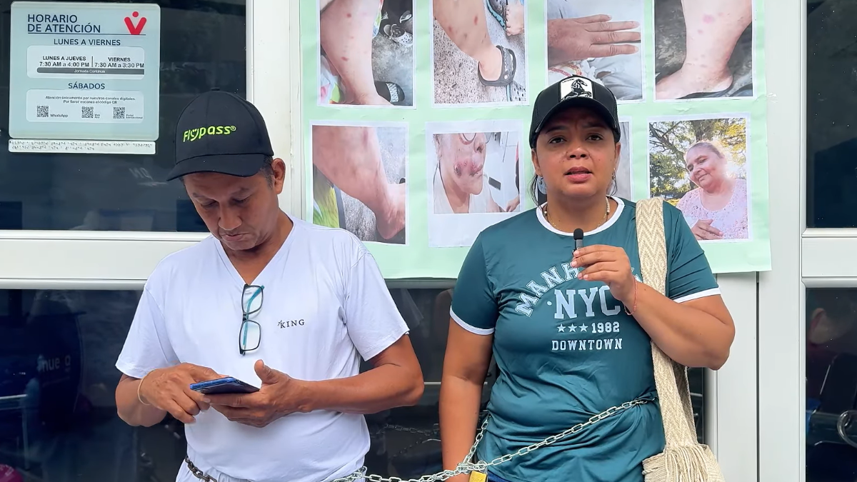 La urgencia se reflejó en el drama de las familias: Adalberto Palacio se encadenó para reclamar la anfotericina B y la remisión inmediata para su esposa, Neida Flores Jacome, quien padece leishmaniasis visceral y lleva cerca de 60 días hospitalizada en la Clínica Génesis de Puerto Berrío.