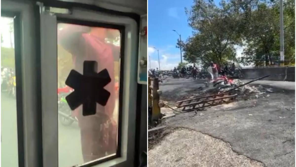 Algunos manifestantes estarían intimidando a ambulancias y quemando vehículos en plena vía pública, denunció la Gobernación de Antioquia. FOTO: Cortesía