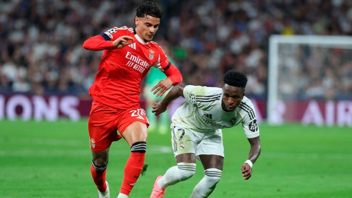 Richard Ríos junto a Vinícius Júnior en el partido entre el Real Madrid y el Benfica. FOTO GETTY