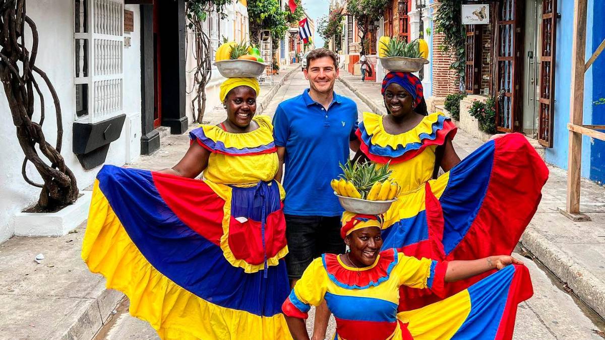 El exfutbolista español subió fotos en la turística zona del Centro Histórico, así como una en la que aparece junto a tres mujeres palenqueras, enfundadas en un traje típico que lleva los colores de la bandera de Colombia.